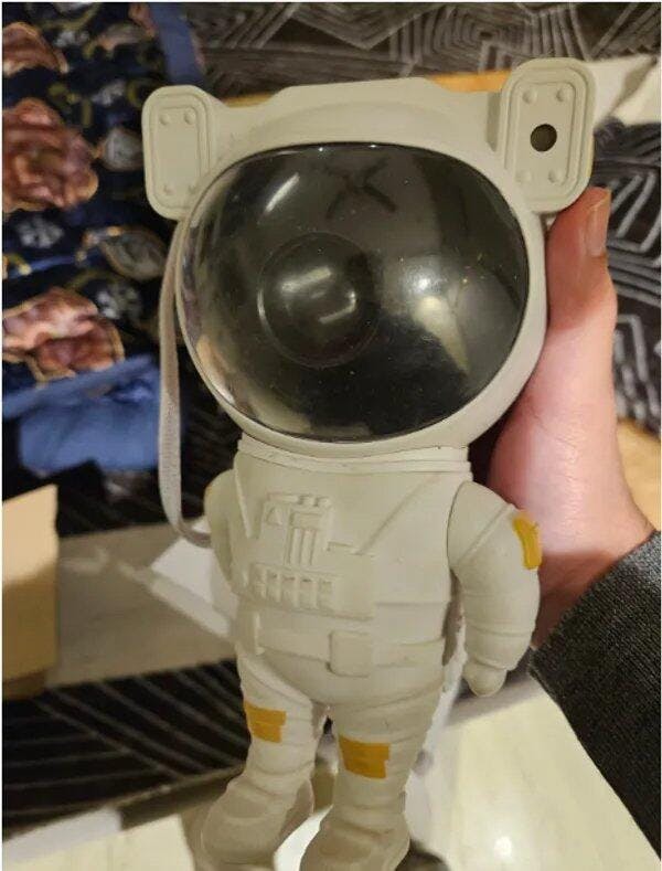 - [Unique appearance and innovative design] The unique astronaut appearance design and the starlight of the starry sky and Milky Way will take you to explore the mysterious and vast starry sky. The head of the astronaut can be rotated 360° by magnetic force, projecting the nebula to any place without restriction. In addition, the astronaut's arm can be moved, and it can assume all kinds of poses you want, which is also a good decoration. Let you dream of space at night.