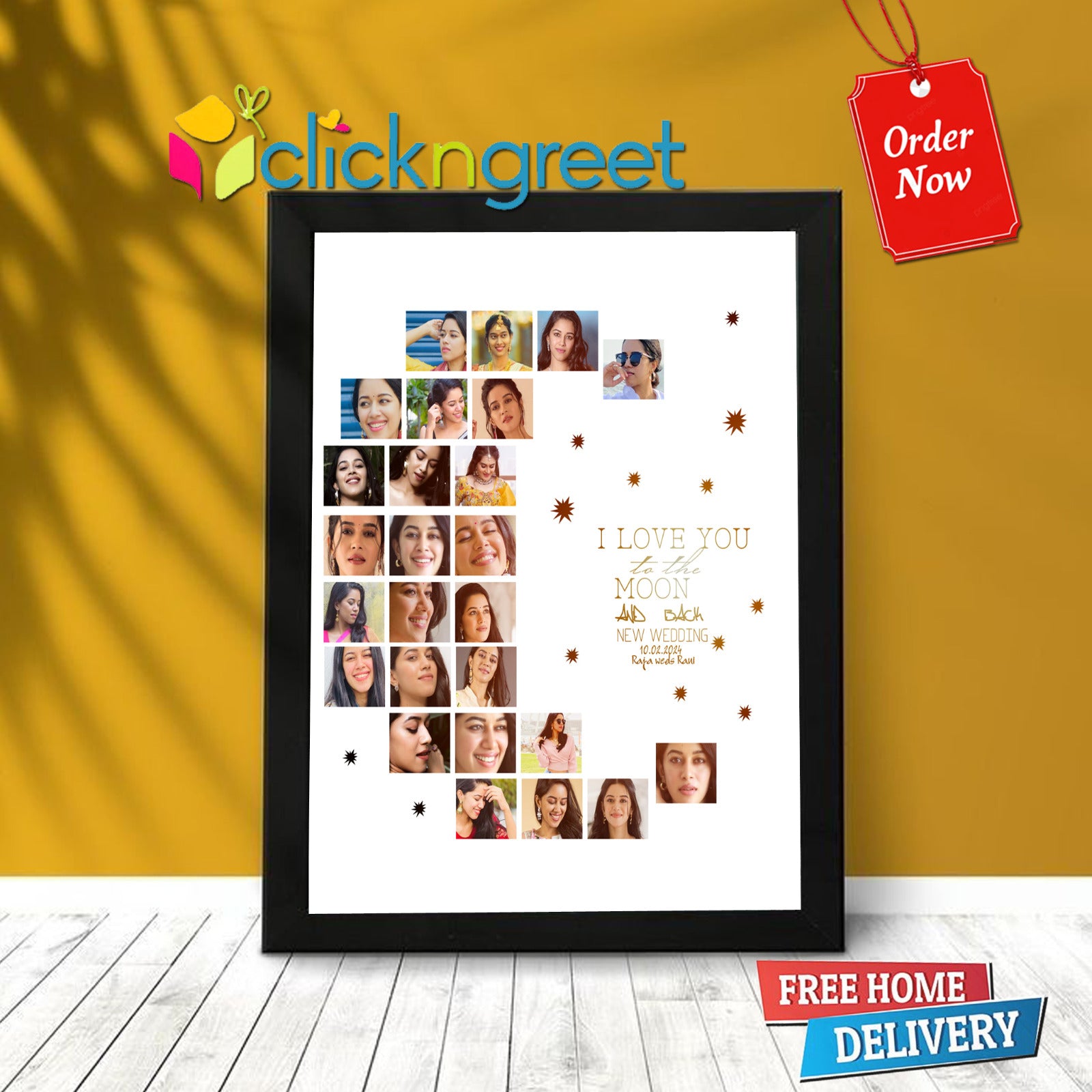 Turn wedding memories into timeless art with the ClickNGreet C-Shape Marriage Collage Frame – where love meets elegance in every sparkle.