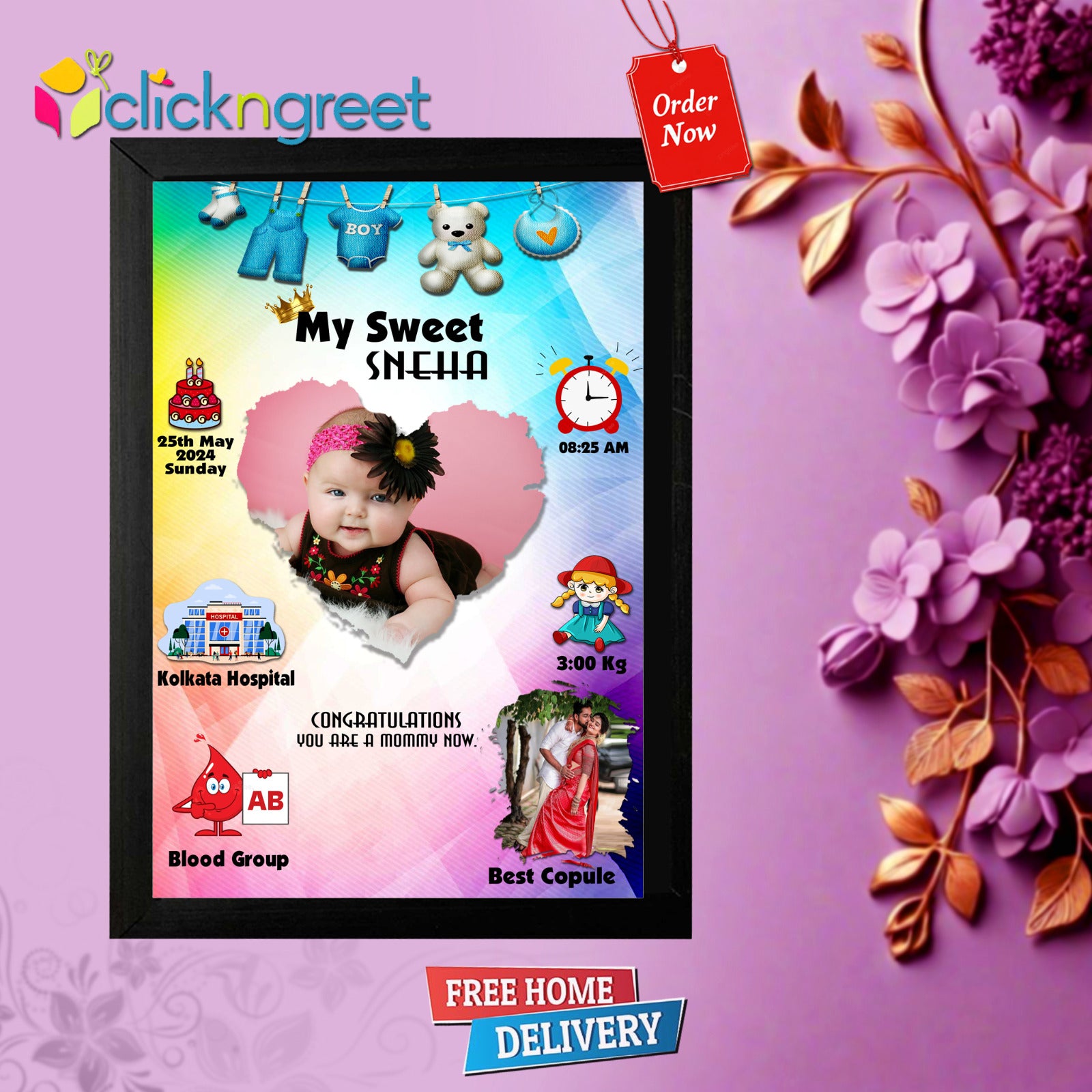 - Fully Customizable: Personalize with your baby boy’s name, birth date, time, weight, and length for a one-of-a-kind keepsake.