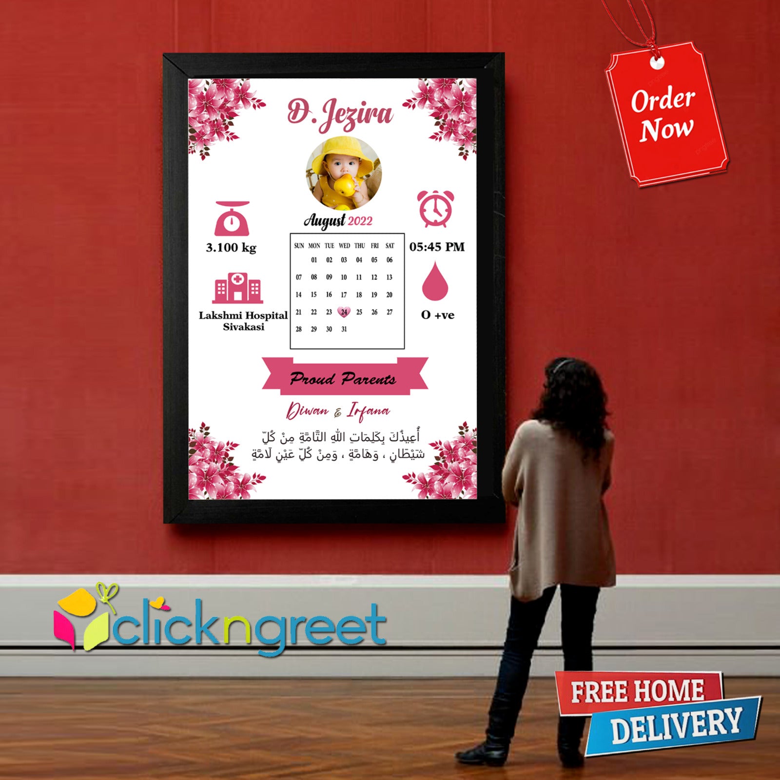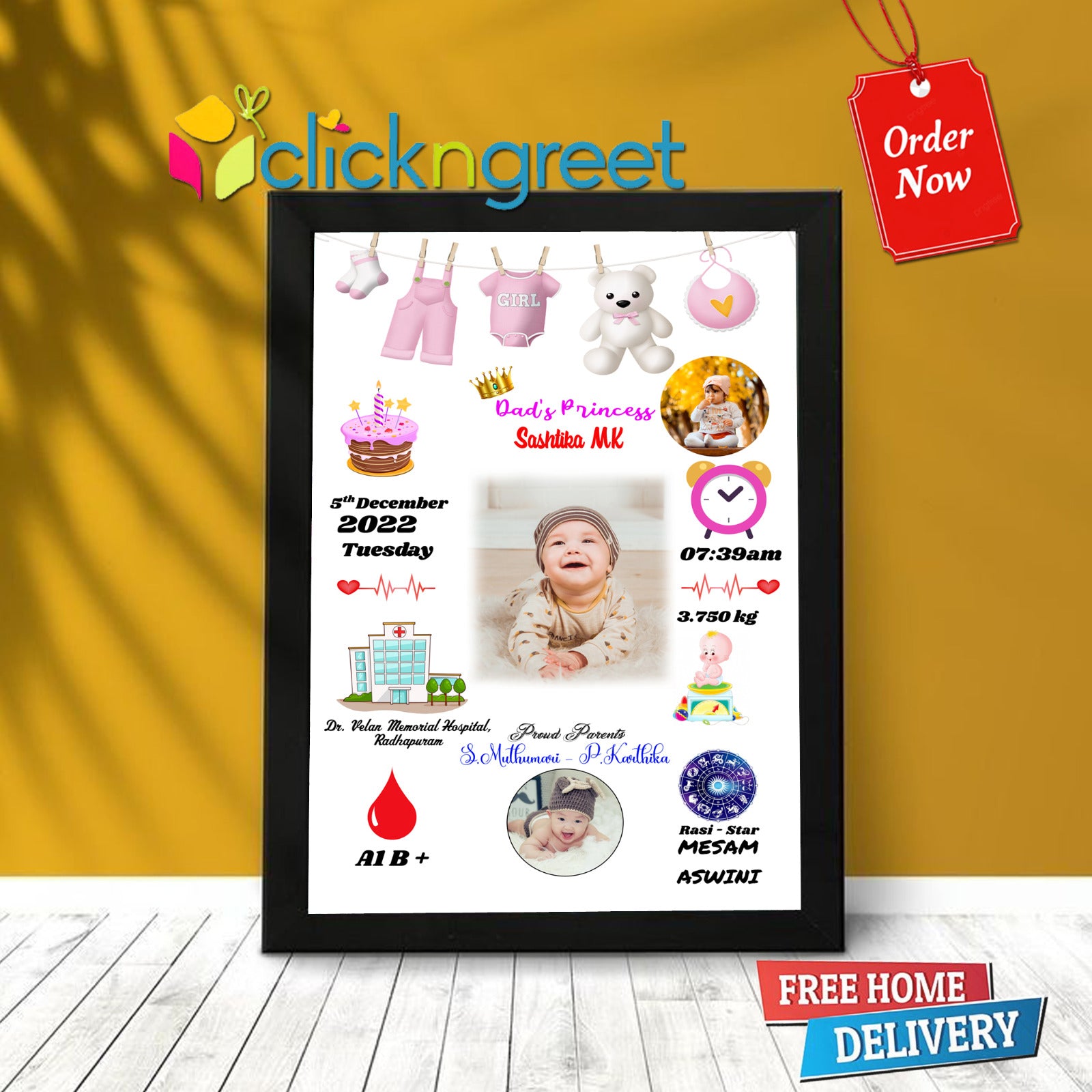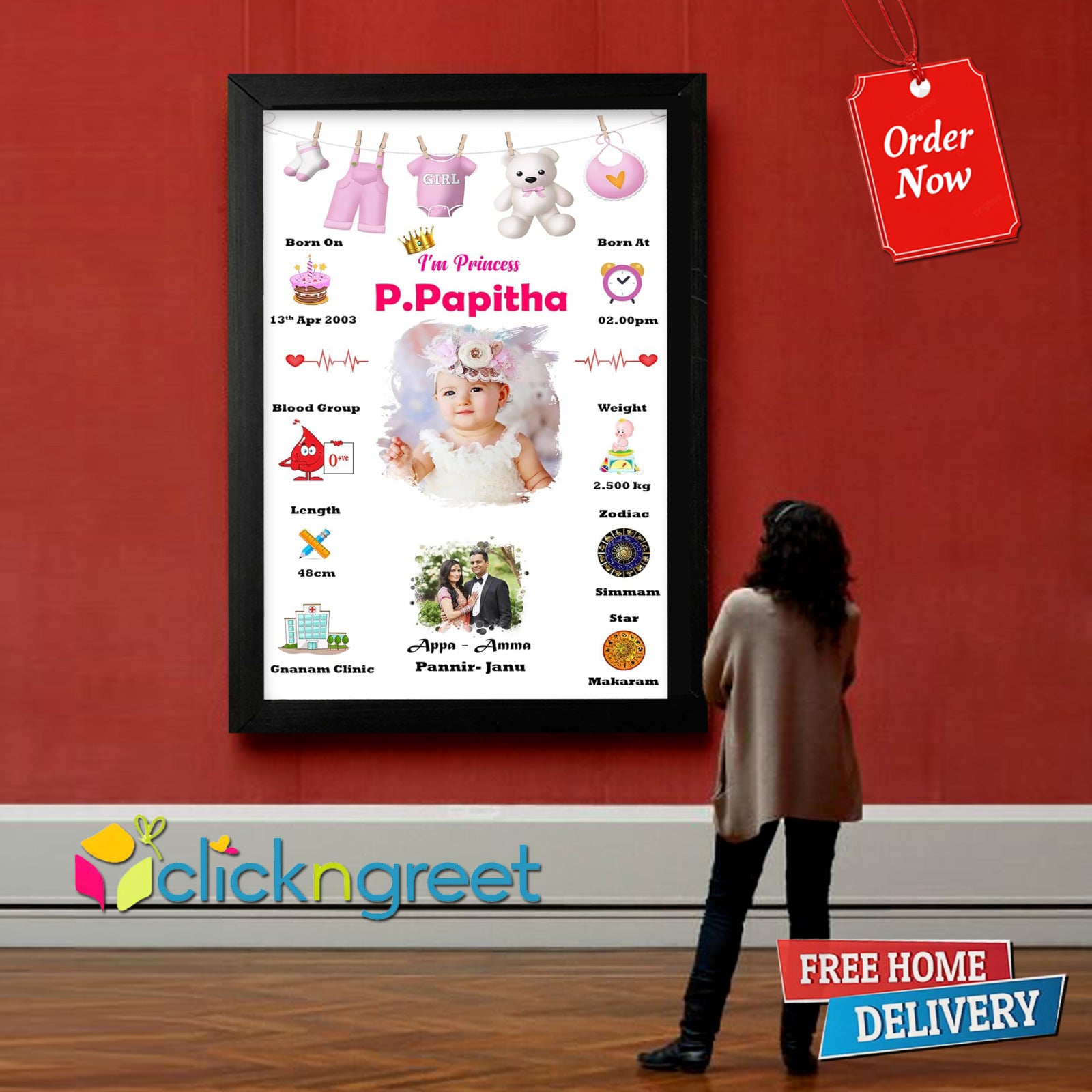 Personalized Baby Girl 1st Year Birth Details