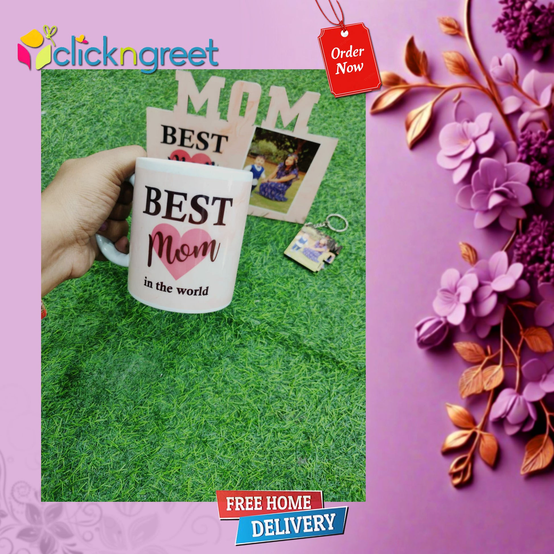 - π Personalized Motherβs Day Combo β Includes 1 custom photo frame, ceramic mug, and keychain
