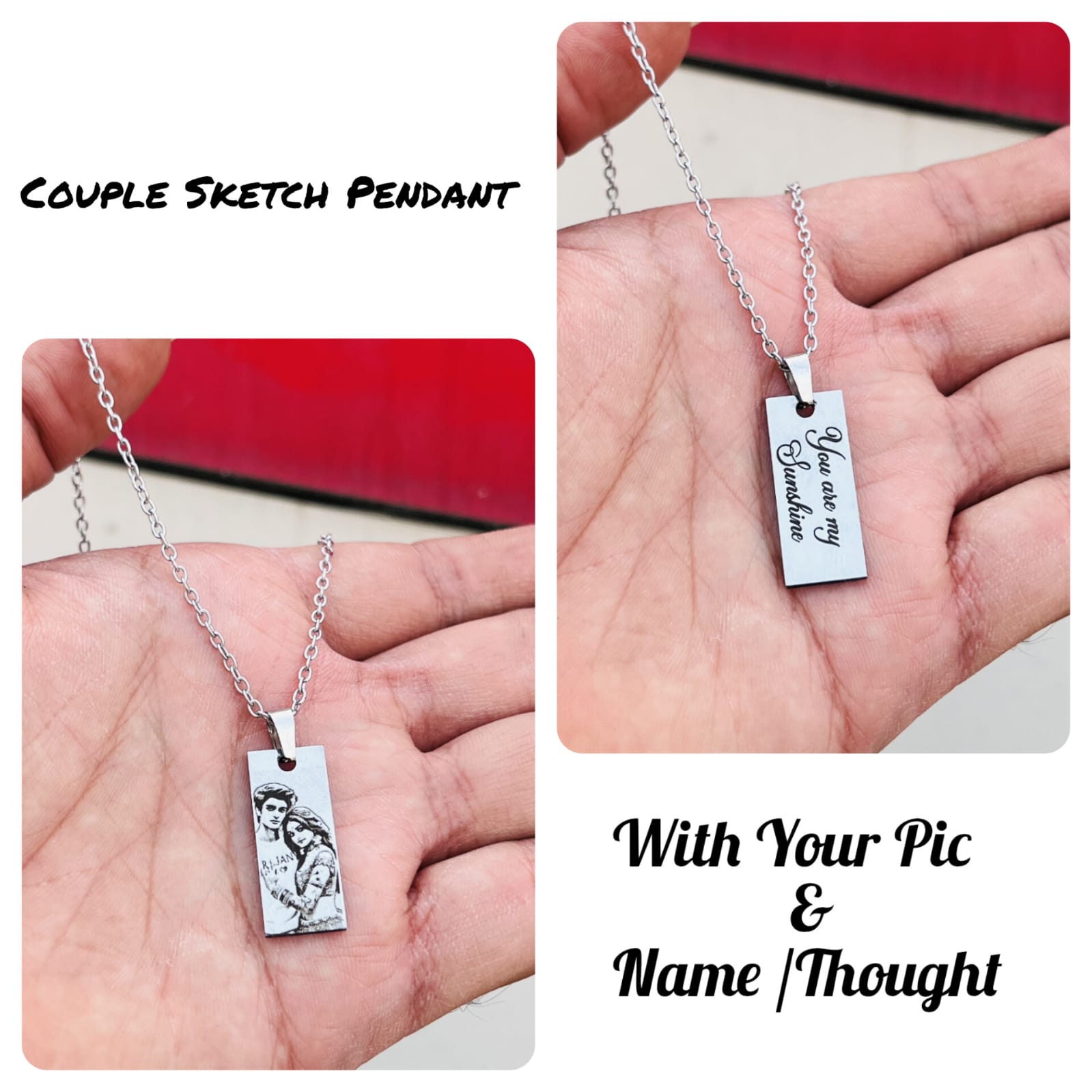 Surprise your special someone with the ClickNGreet Trending Mini Pendant – a one-of-a-kind keepsake that speaks from the heart. This elegant and personalized pendant features your choice of a Couple Sketch or Eye Illustration on the front, symbolizing deep connection and love. On the back, add a custom name, message, or meaningful thought, making it truly unique.